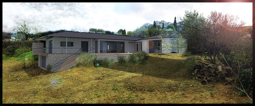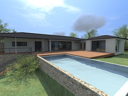 Le projet initial a donc été modifié pour une meilleure intégration à l'environnement résidentiel avec nombre de villas traditionnelles en proposant des toitures rampantes (initialement toit-terrasses) mais de couleur sombre afin de garder un esprit contemporain et original.