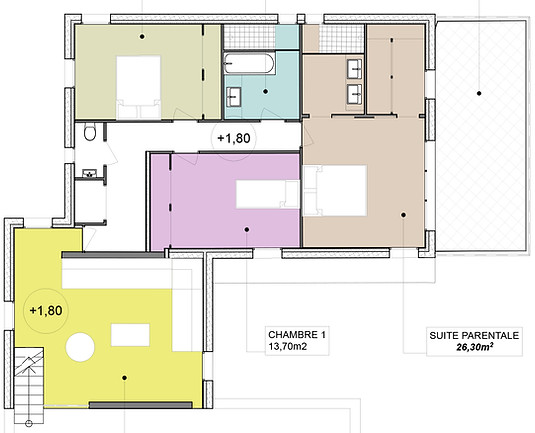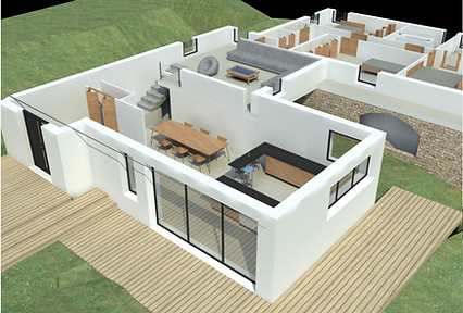 De ce fait la villa offre une architecture originale avec des pièces articulées en demi-niveaux en privilégiant l'intimité, les vues et l'orientation la plus favorable.